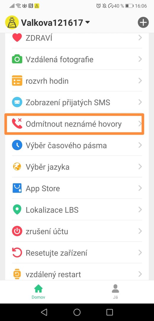 Odmítnutí neznámých hovorů