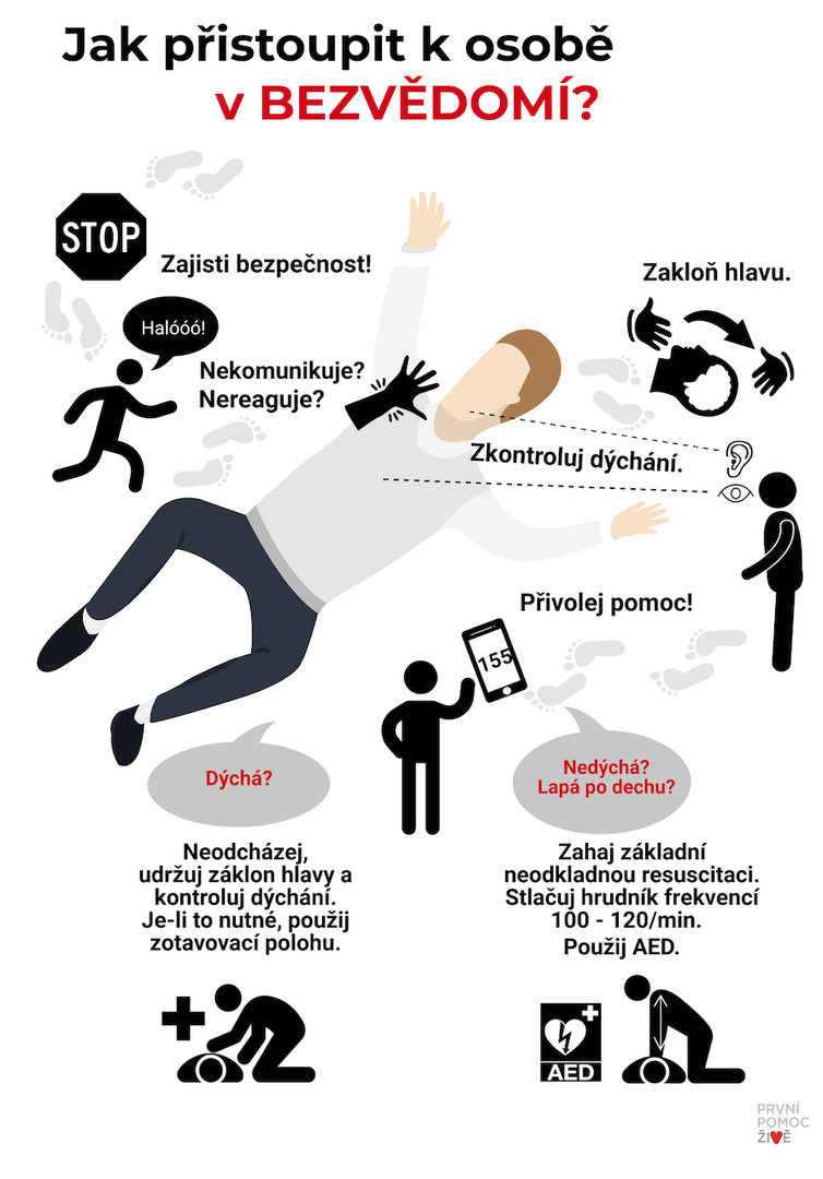 - v první řadě se zaměřte na základní funkce jako je dýchání, vědomí a krevní oběh;