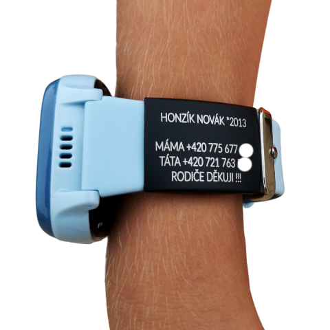 - ZDARMA Vám na náramek vyrobíme také laserem značený ocelový štítek s důležitými údaji (podívejte se níže na foto ukázku).