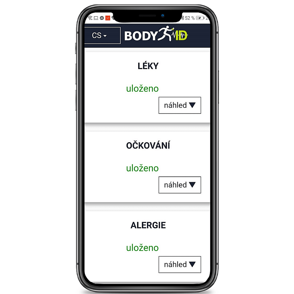 OSOBNÍ ÚDAJE | KONTAKTY NA OSOBY BLÍZKÉ A LÉKAŘE | ÚDAJE O POJIŠTĚNÍ | LÉKAŘSKÉ ZPRÁVY | PŘEDEPSANÉ LÉKY | ALERGIE | OČKOVÁNÍ