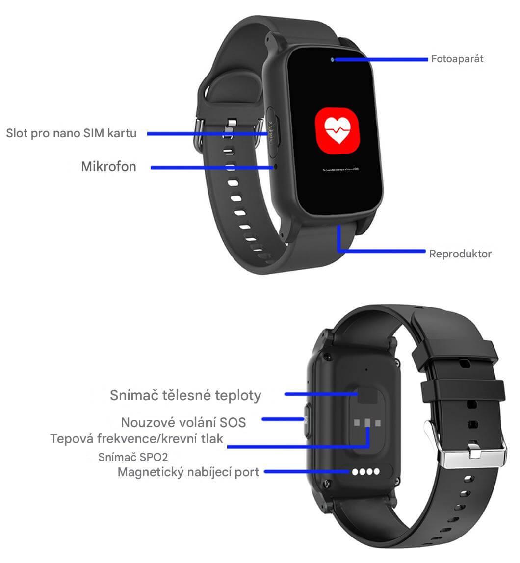 PRO SENIORY / UŽŠÍ DESIGN – nový model 2026 – zaujmou moderním a úzkým designem, který je pohodlný na každodenní nošení. Nabízí snadné ovládání v češtině, stabilní připojení přes 4G síť, oboustranné SOS volání i videohovory. Samozřejmostí je lokalizace v reálném čase, detekce pádu a orientační měření tepu, tlaku a okysličení krve. Při detekci pádu se navíc automaticky spustí hlasitý zvuk sanitky, který upozorní okolí a pomůže přivolat rychlou pomoc. Zařízení je vodotěsné (IP67) a všechny funkce jsou přehledně dostupné v české mobilní aplikaci. Ideální volba pro seniory, kteří chtějí být v bezpečí, mít přehled o svém zdraví a zůstat ve spojení s rodinou.