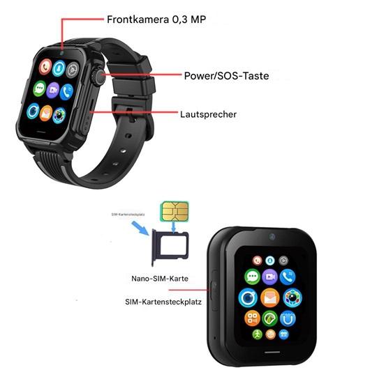 ■ SOS-Anruf, Videoanruf und Vibration: Nach dem Drücken der SOS-Taste (3 Sekunden lang gedrückt halten) ruft die Uhr automatisch bis zu 3 SOS-Kontakte Ihrer Wahl an. Wenn der erste Kontakt den Anruf nicht beantwortet, wechselt die Uhr automatisch zu den nächsten aufgelisteten Kontakten gemäß der angegebenen Reihenfolge. Benutzer verbinden sich per Telefon und können miteinander kommunizieren.
