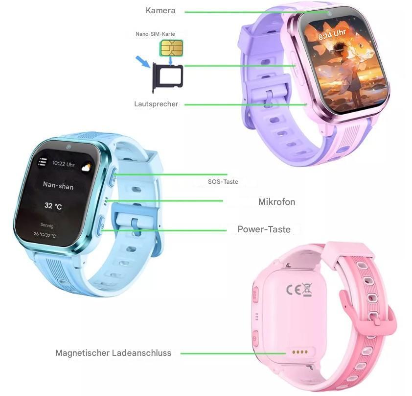 Und der Spaß? Animierte Zifferblätter, Apps wie WhatsApp, YouTube oder TikTok, Musik, Videos und Spiele – alles direkt in der Uhr! Die App und das Menü sind komplett auf Deutsch.