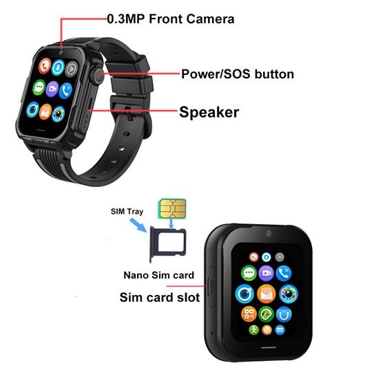 ■ SOS call, video call and vibration: After pressing the SOS button (hold for 3 seconds), the watch automatically calls up to 3 SOS contacts you have selected. If the first contact does not answer the call, the watch automatically switches to the next contacts in the specified order. Users connect by phone and can communicate with each other.