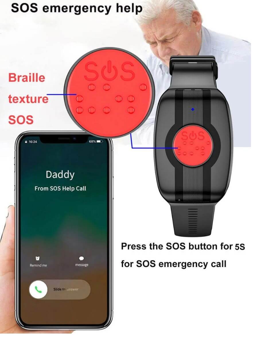 FOR SENIORS. LATEST / TOP MODEL. + BATTERY LIFE. Application available in English. The bracelet with the simplest control. It has only one SOS button for easier handling, which is also upgraded for the visually impaired with Braille. The possibility of a precise 4G network. Waterproof (IP67). Simple functions. This model is smaller than the predecessor Y6T, so it is more compact and suitable for all wrists (including the slimmer ones). Indicative measurement of heart rate, pressure and also blood oxygen level. Fall detection, safe zones and other features available in the manufacturer's app. Click on the image for more information.