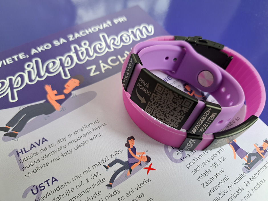 Náramok pre deti a dospelých trpiacich epilepsiou. QR kód obsahuje video s inštruktážou prvej pomoci pri záchvate typu "grand mal", ktoré jednoducho a spoľahlivo navedie svedkov záchvatu k správnemu poskytnutiu pomoci.